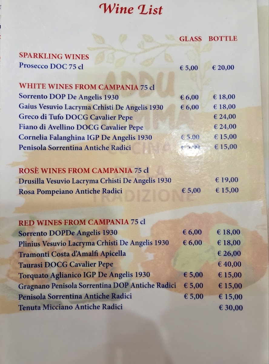 Addu Mamma offers a thoughtfully simple Italian menu that pairs well with its cozy, family-run setting. The dishes focus on fresh, familiar flavors typical of Sorrento, creating a relaxed dining experience where guests can enjoy both light starters and heartier main courses.